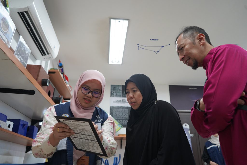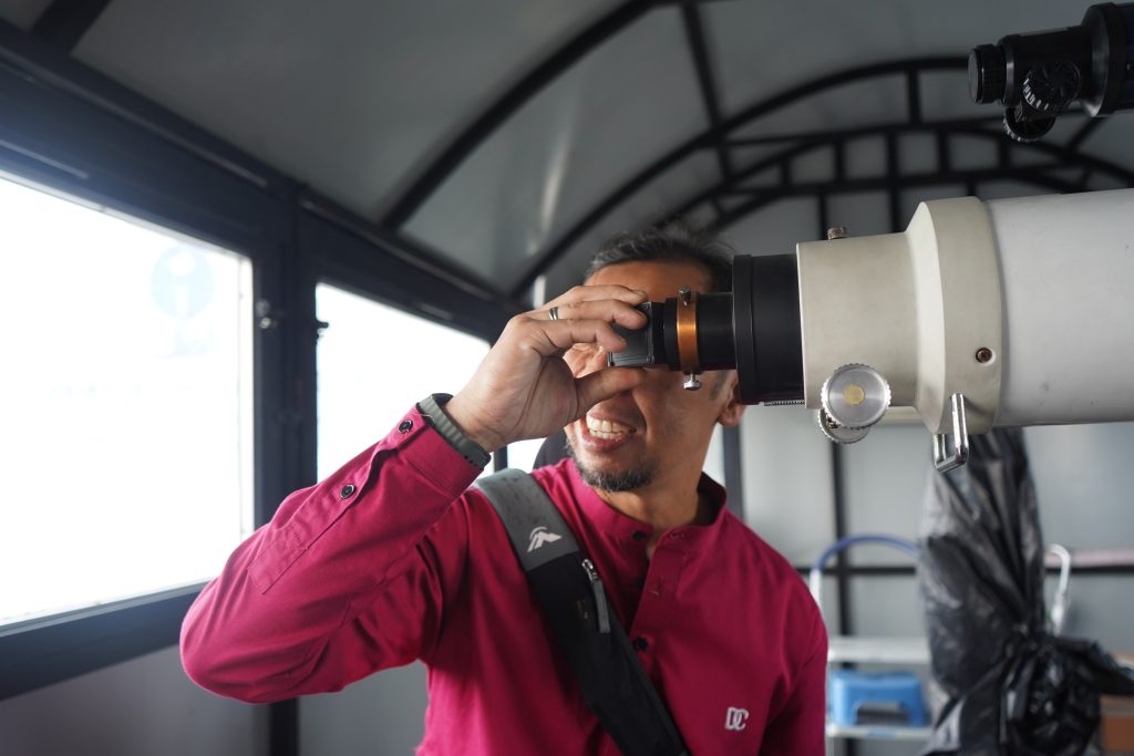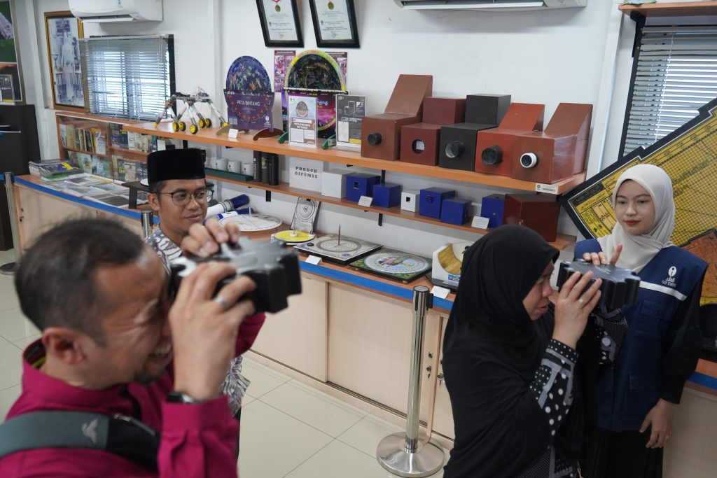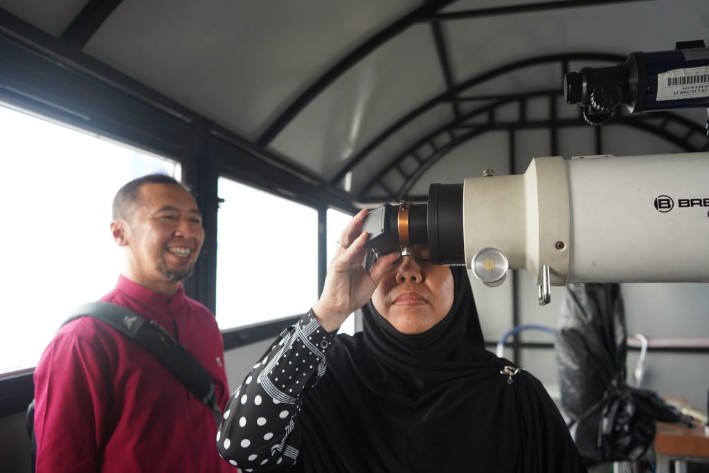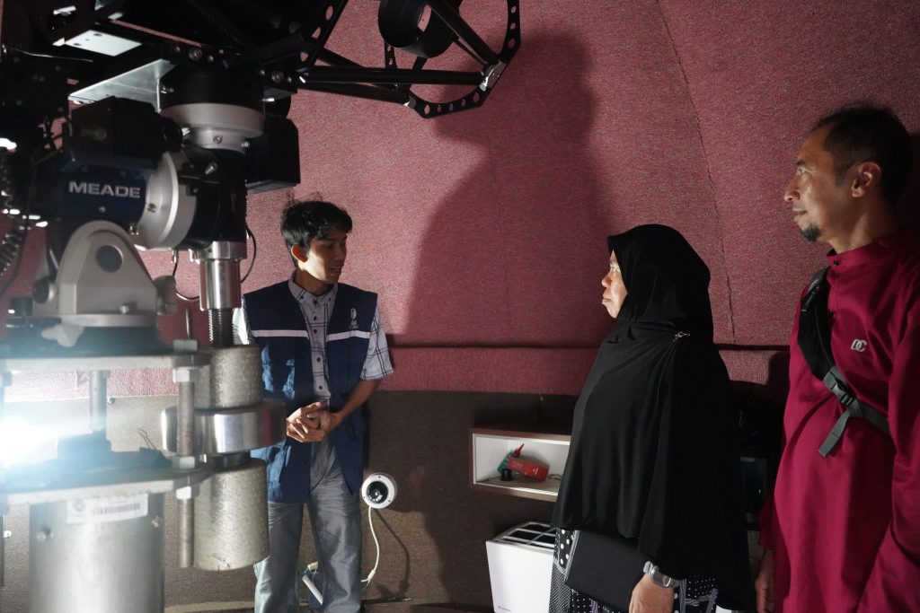 Dalam kunjungan tersebut, para tamu diajak untuk mengenal lebih dekat fasilitas observatorium seperti simulasi Arah Kiblat menggunakan Software Google Earth dan pengenalan instrumen OIF UMSU.
